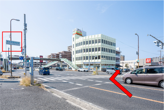 泉佐野警察署が右斜めに見えるので、その交差点を左折してください。