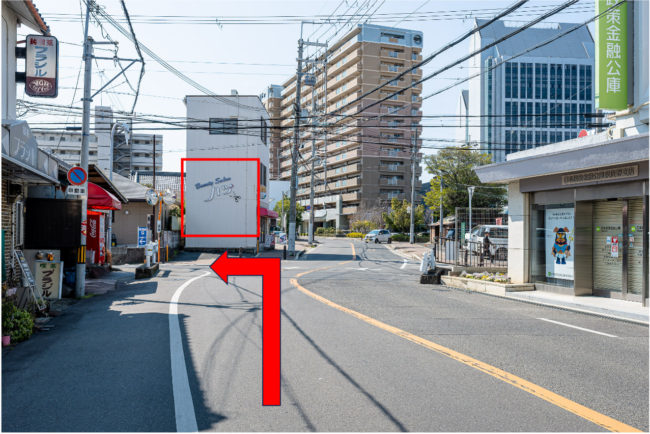 左折後直進していただき、beauty salonハツさんのある交差点を左折してください。