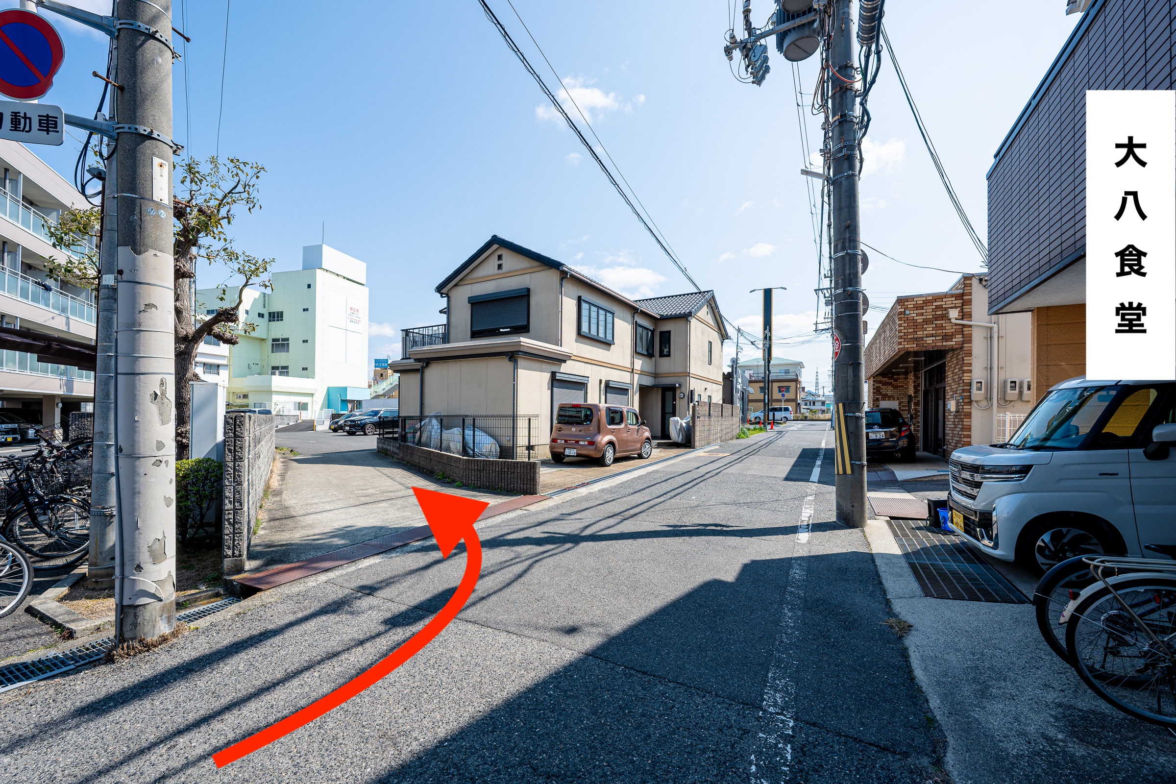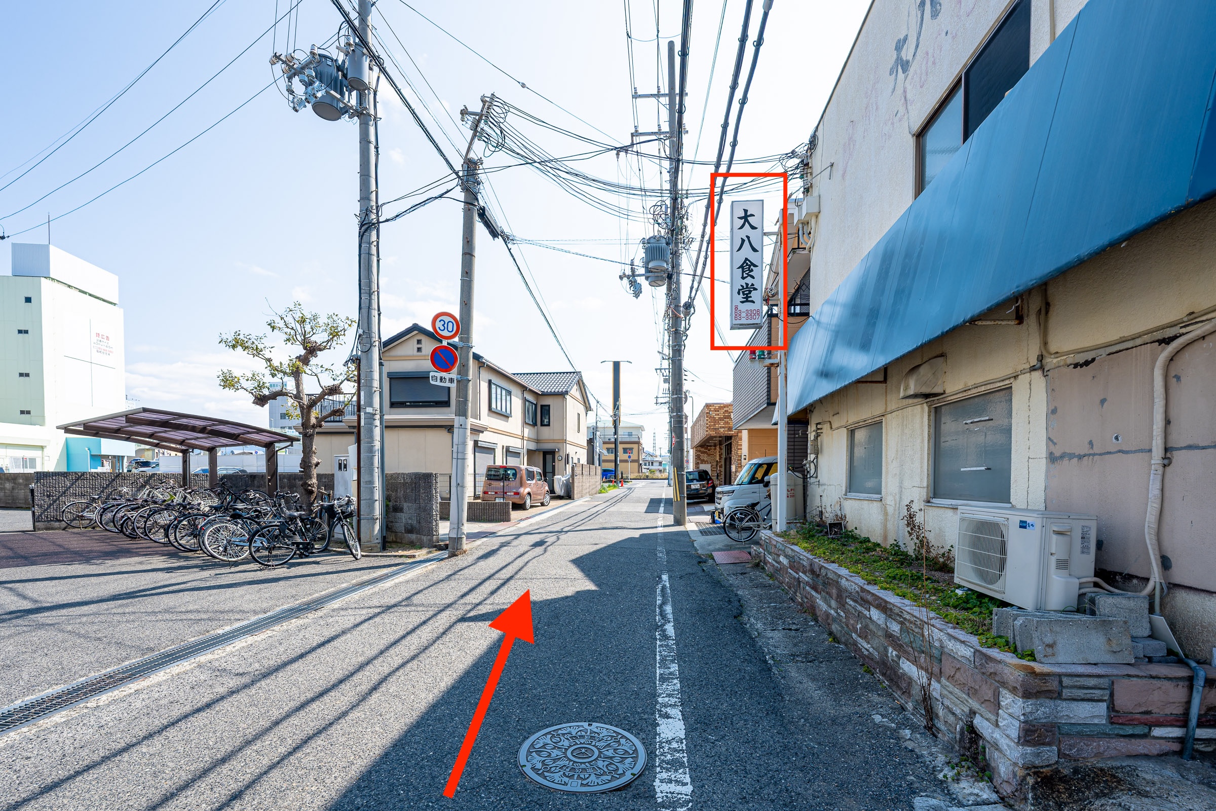 「大八食堂」の角を左折してください。